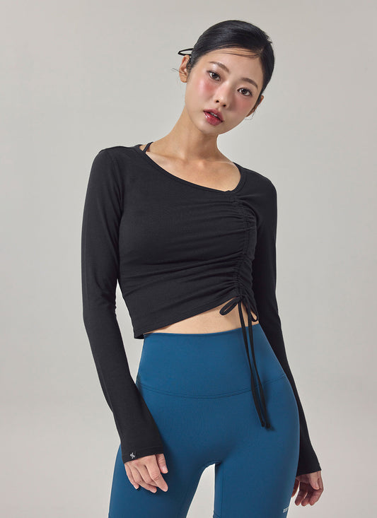 Unbalanced Neck Shirring Long Sleeve
