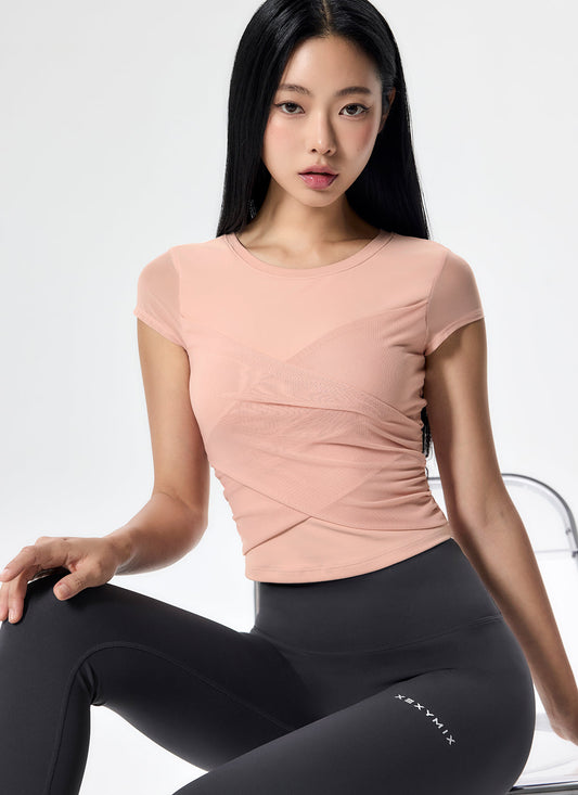 Cotton Like Cross Mesh Short Sleeve
