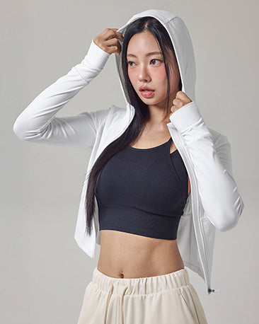 Soft Ribbed Mix Hoodie Zip-up Jacket
