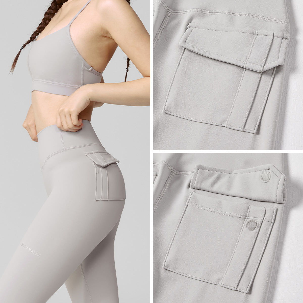 Three-dimensional outer pockets on both hips create a visual volume effect. Velcro allows you to store simple belongings.