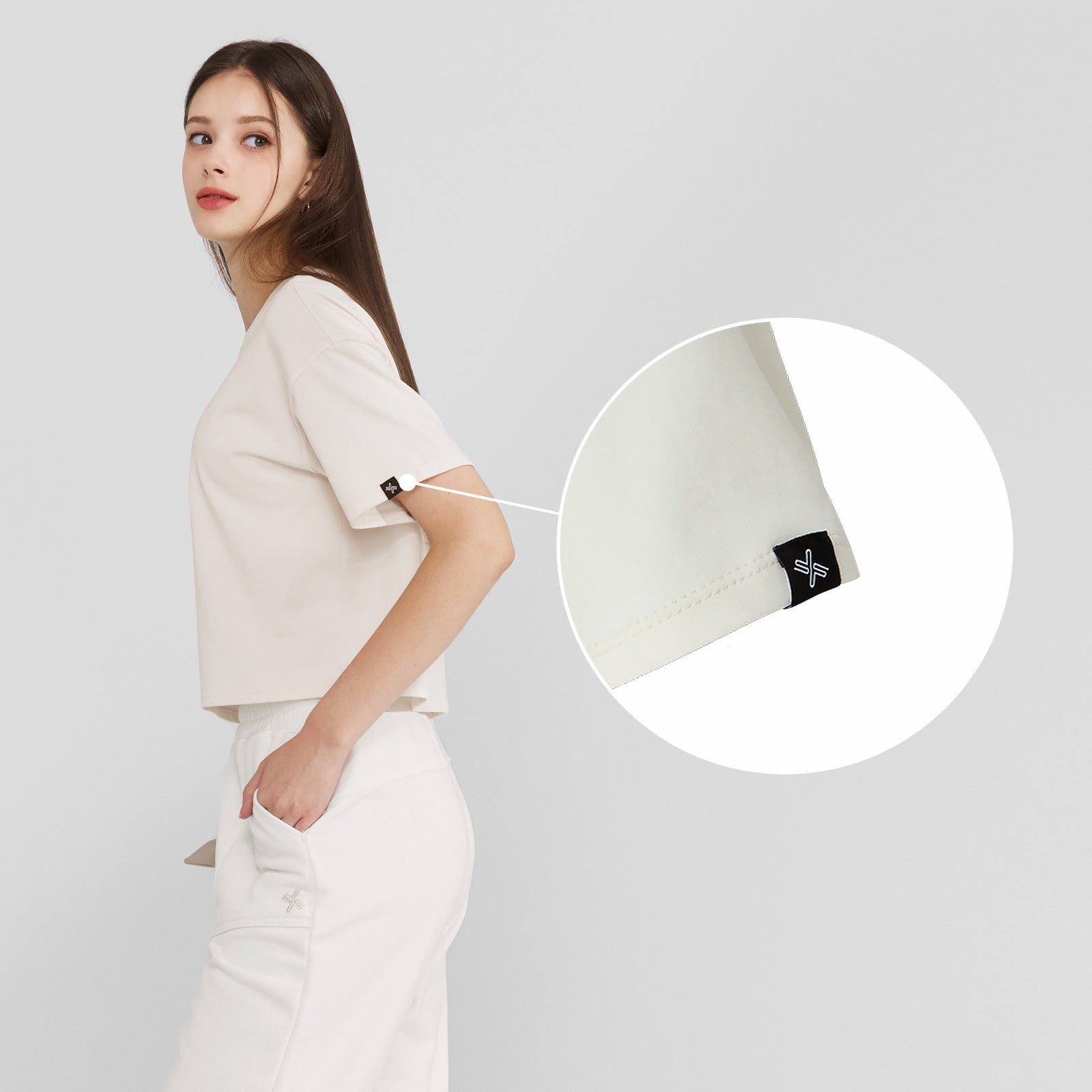 The relaxed round neckline provides a comfortable fit without any sense of tightness, While the inner seam is encased with the same fabric to prevent stretching.