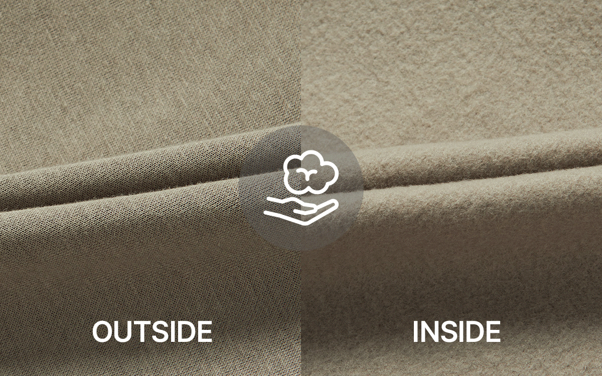 A thick cotton–polyester blend fabric delivers cozy warmth without feeling heavy or stuffy, providing a soft and comfortable wear.