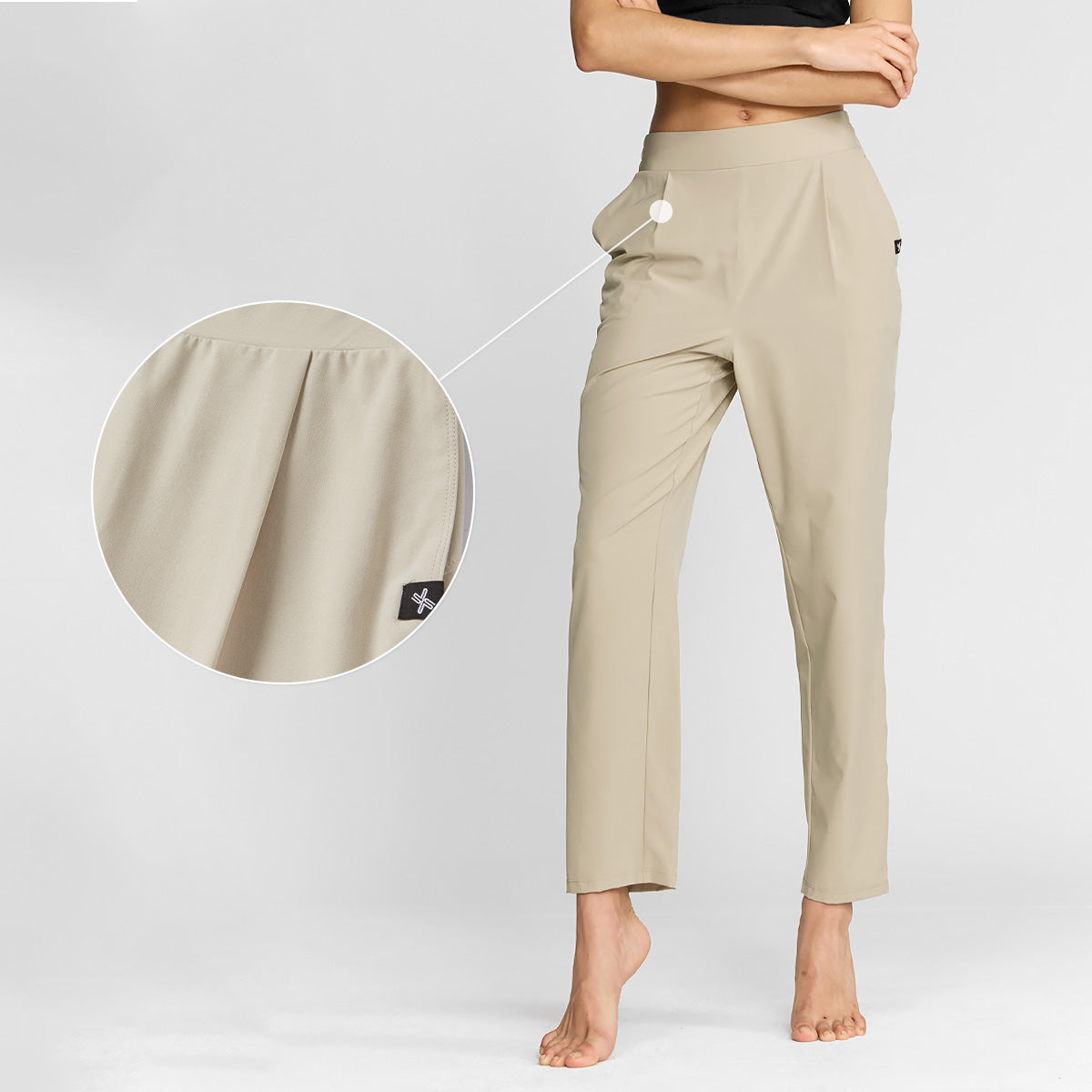 Below the waistband, the single pleat subtly creates a relaxed fit, Concealing the abdomen and Y-zone for excellent body coverage effect.