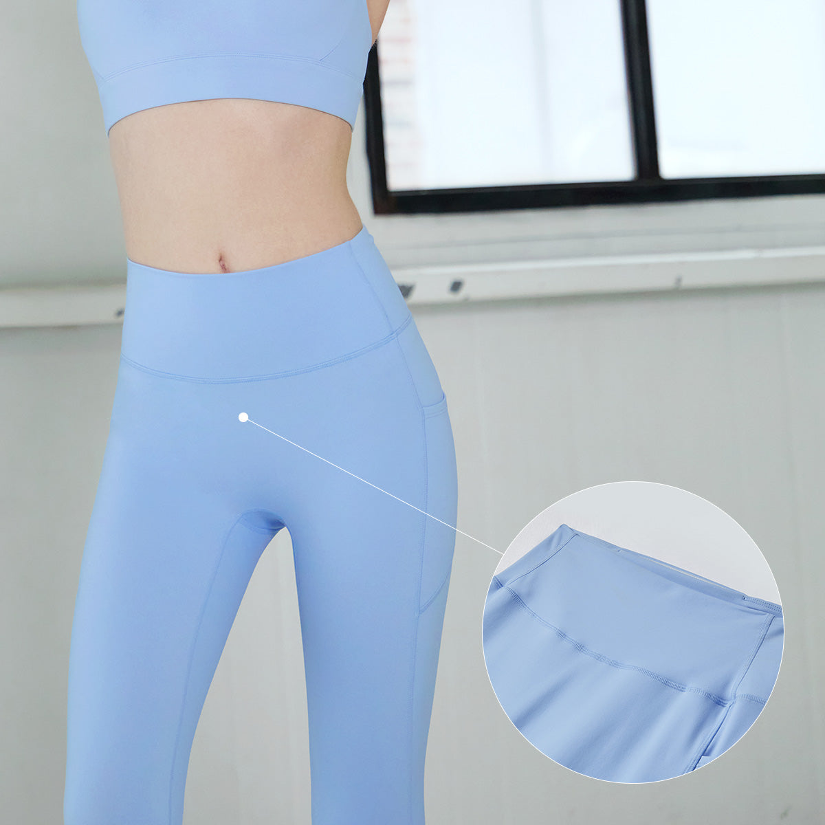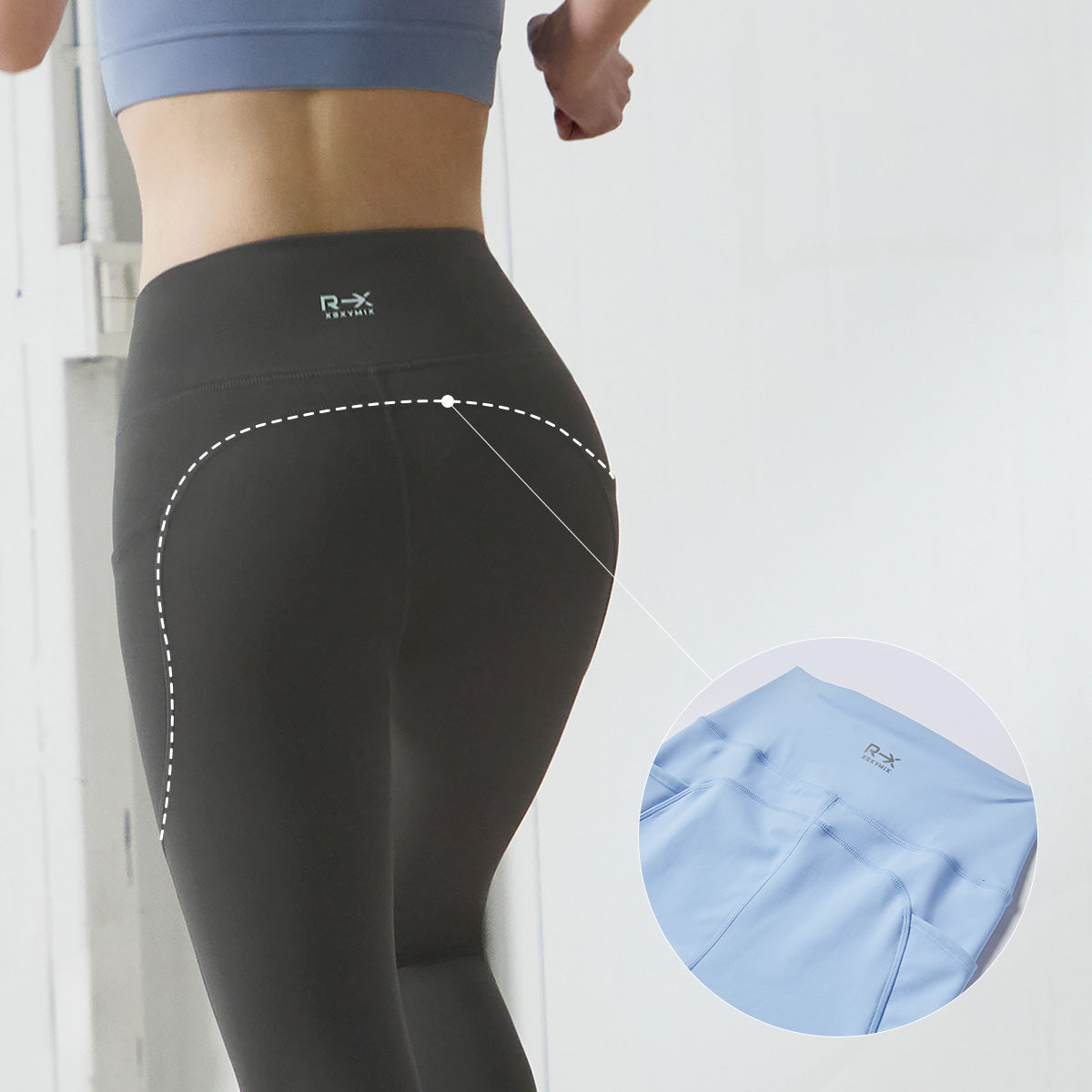 A curved yoke seam is added to the hip area to create a visually lifted effect.