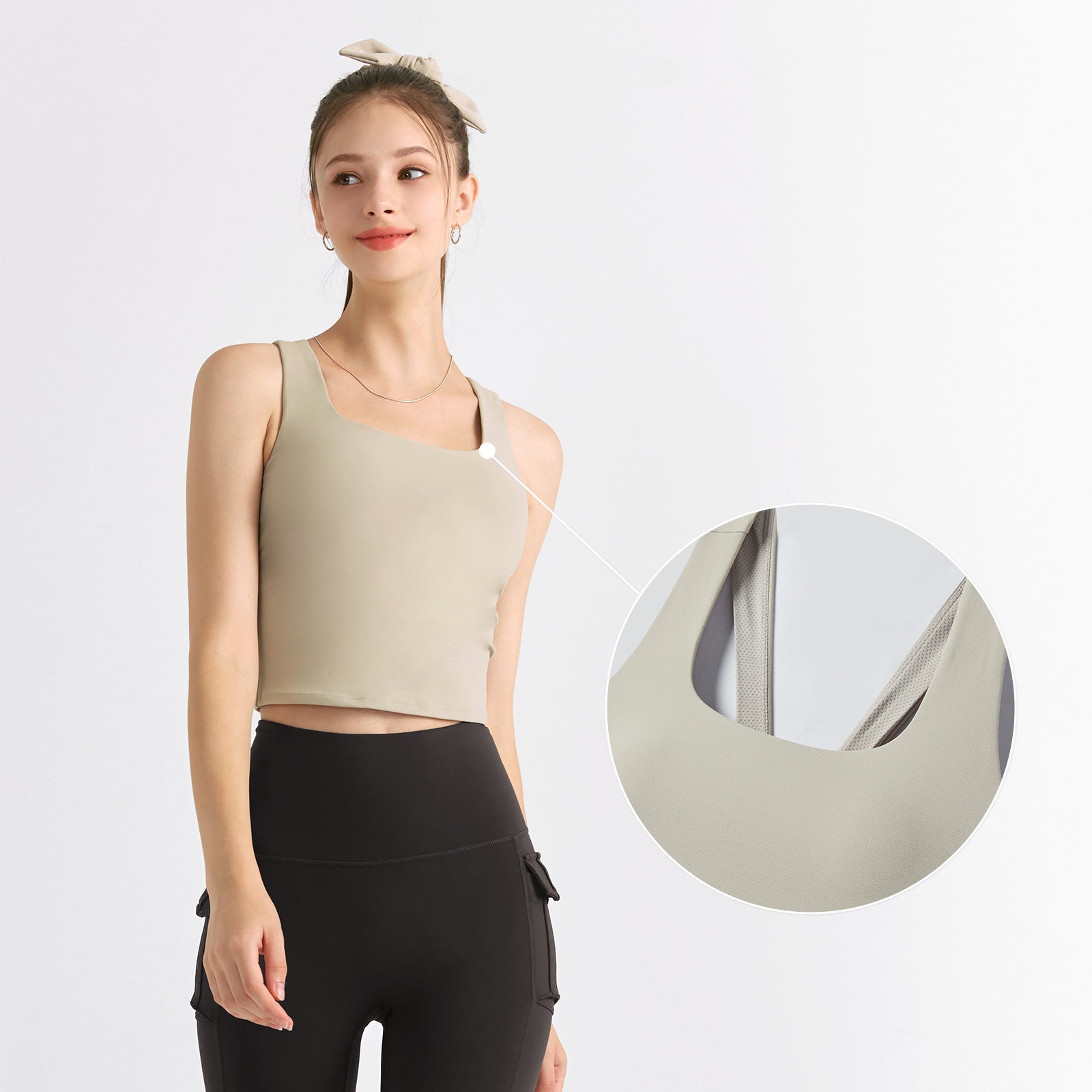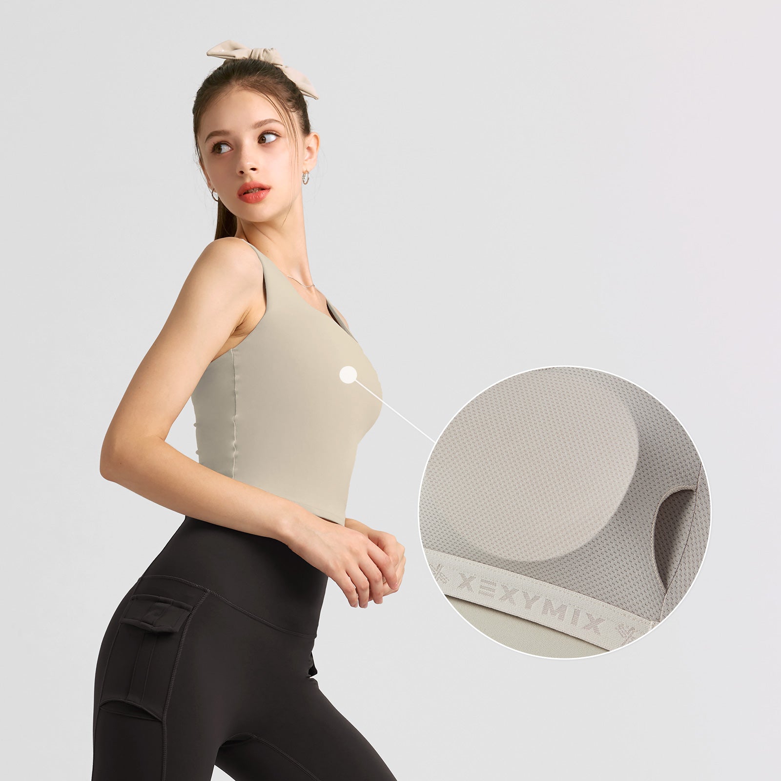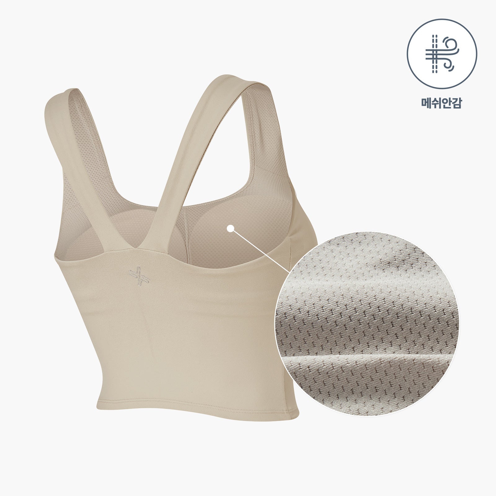 Mesh material is applied to the lining of the bra that touches the skin to quickly absorb and dry sweat, maintaining a comfortable fit.