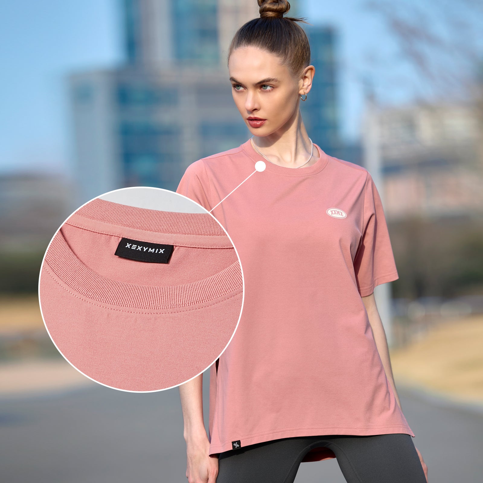 The back length is longer than the front length,it can cover the hip line and make you feel free when wearing leggings.