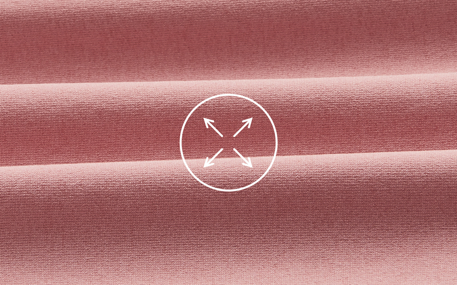 By mixing cotton-like soft fabric with elastic latent crimped yarn, you can wear it comfortably while maintaining a stable fit and increasing activity.