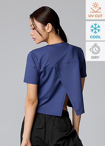 Ice Feather Back Slit Cropped Short Sleeve