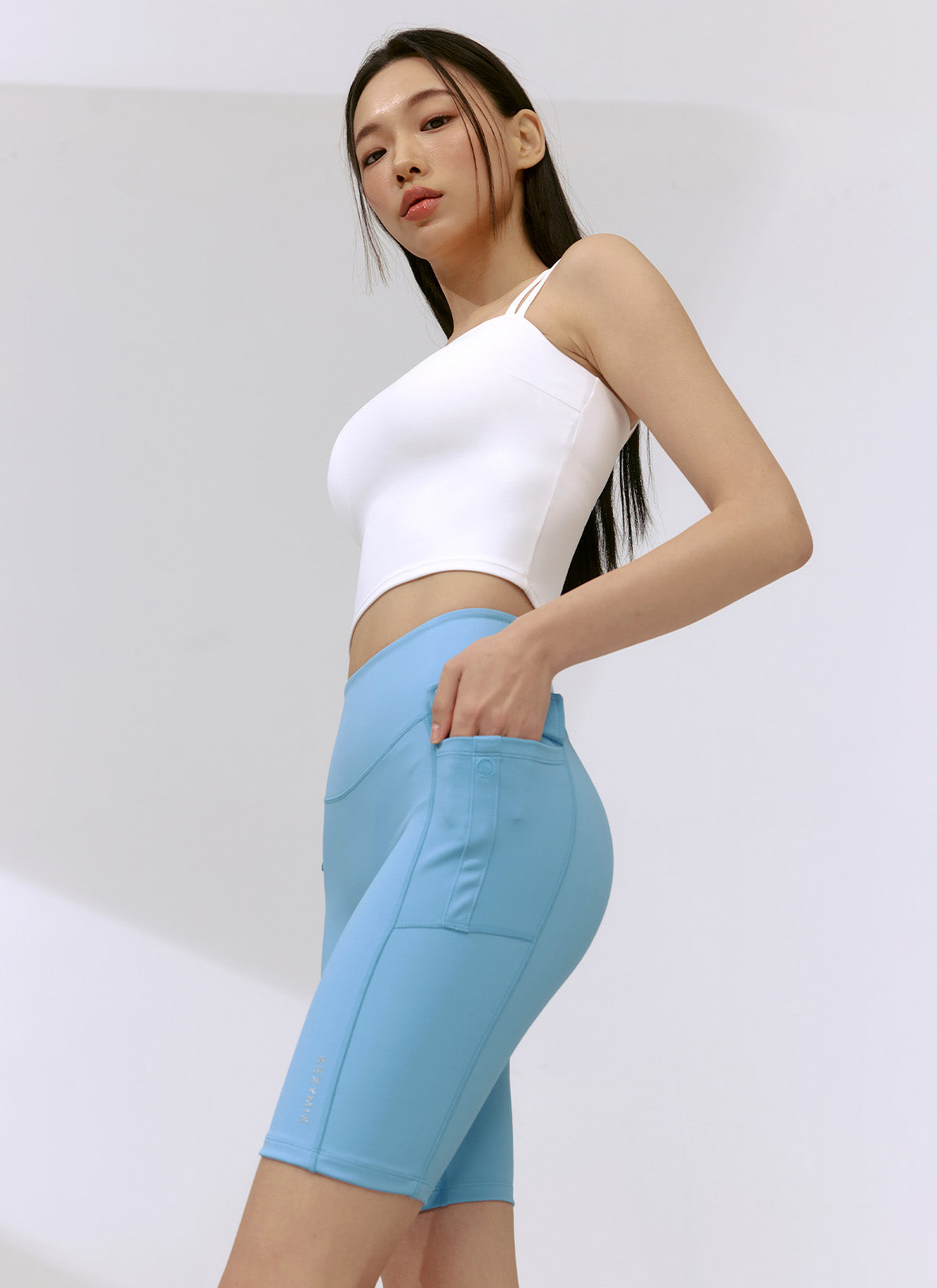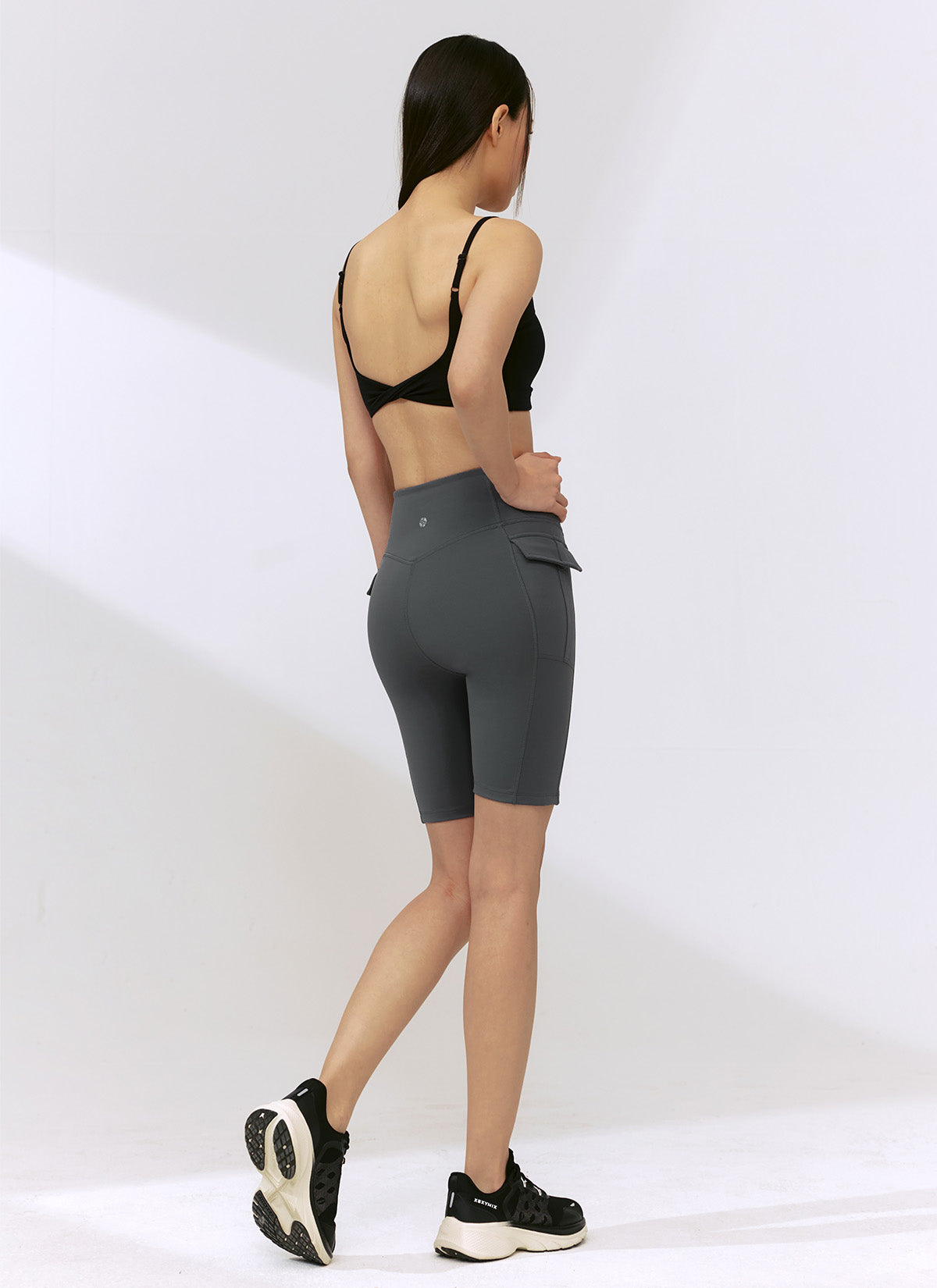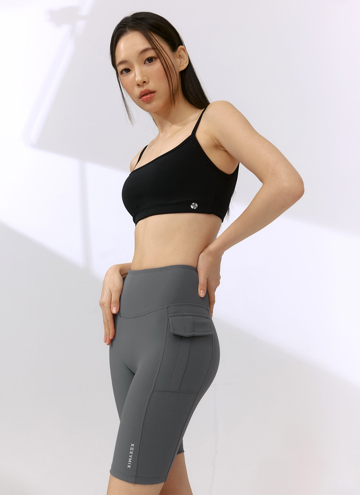 3D outer pockets on both hip lines create a visually volumizing effect, while the Velcro closure allows for convenient storage of small essentials.