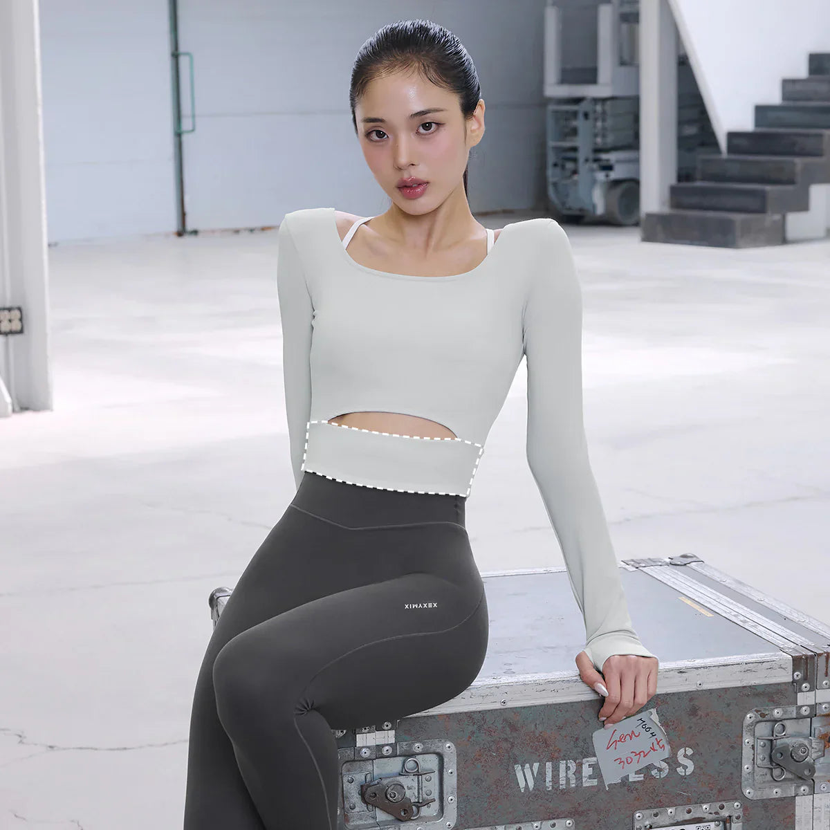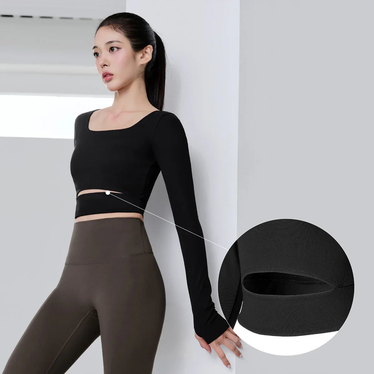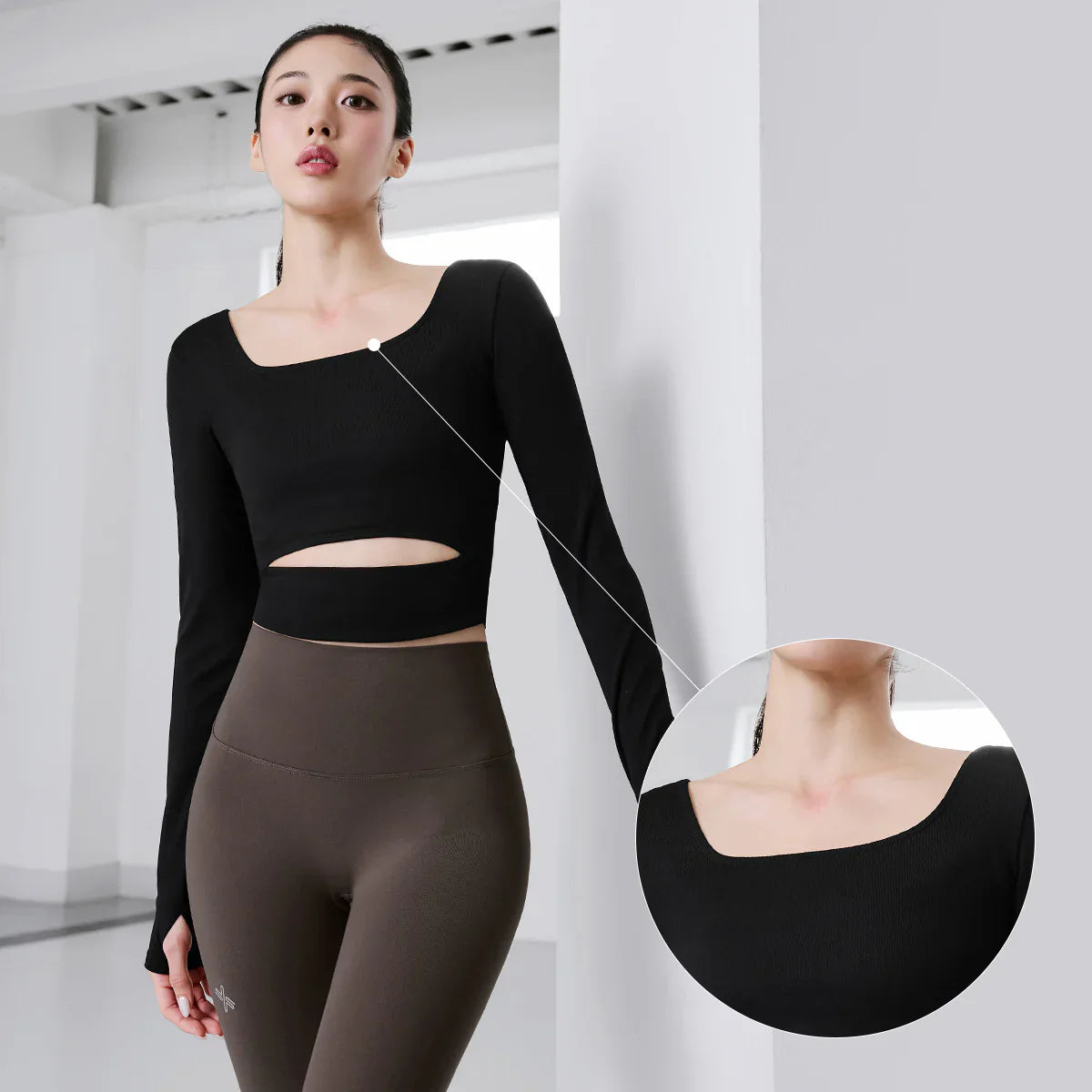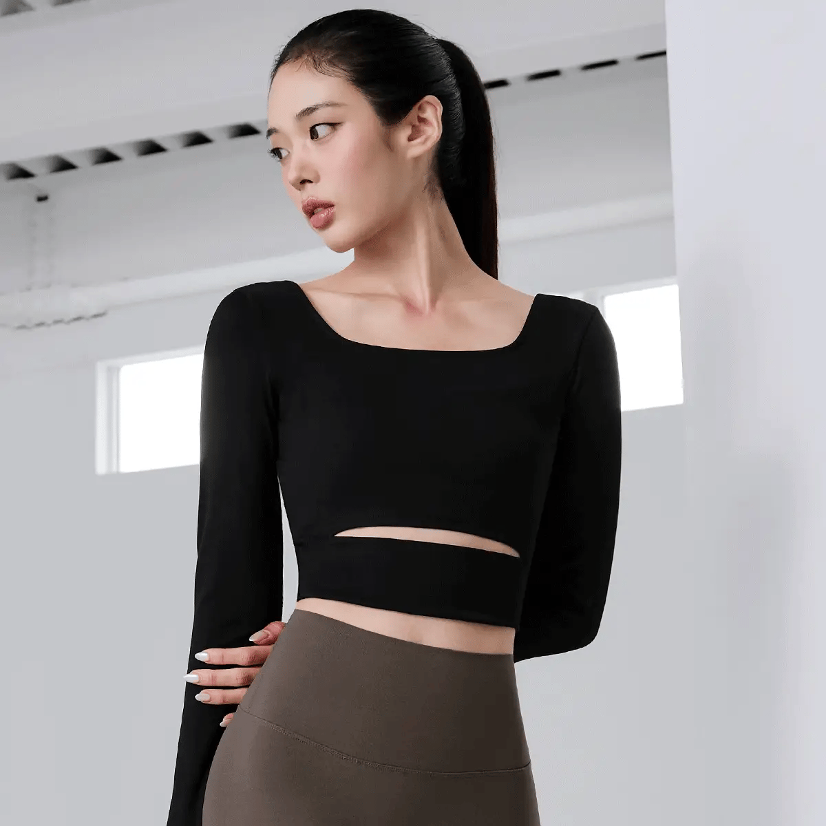 Comfort Square Neck Cutout Long Sleeve