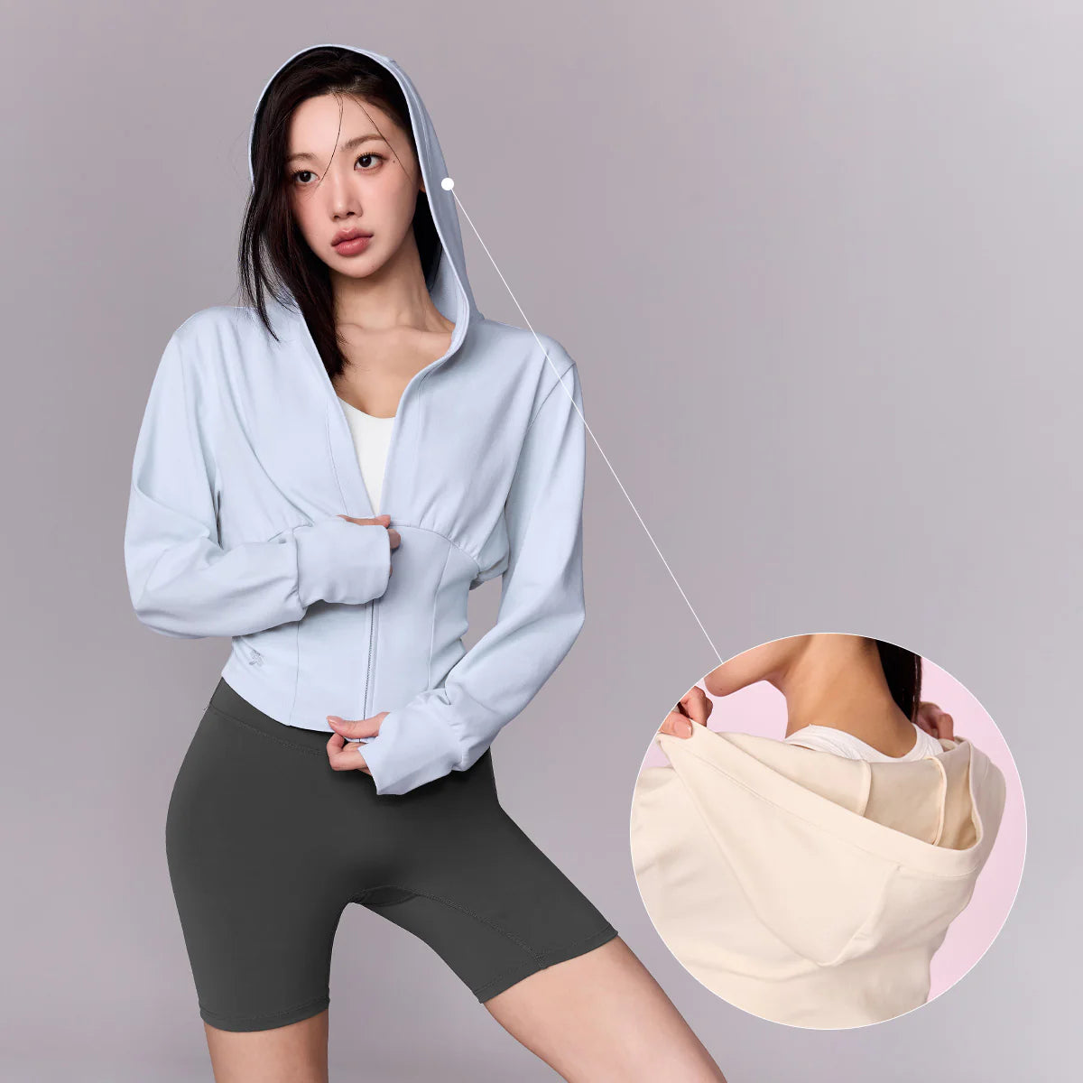 Deep V-Neck Hood Zip-up