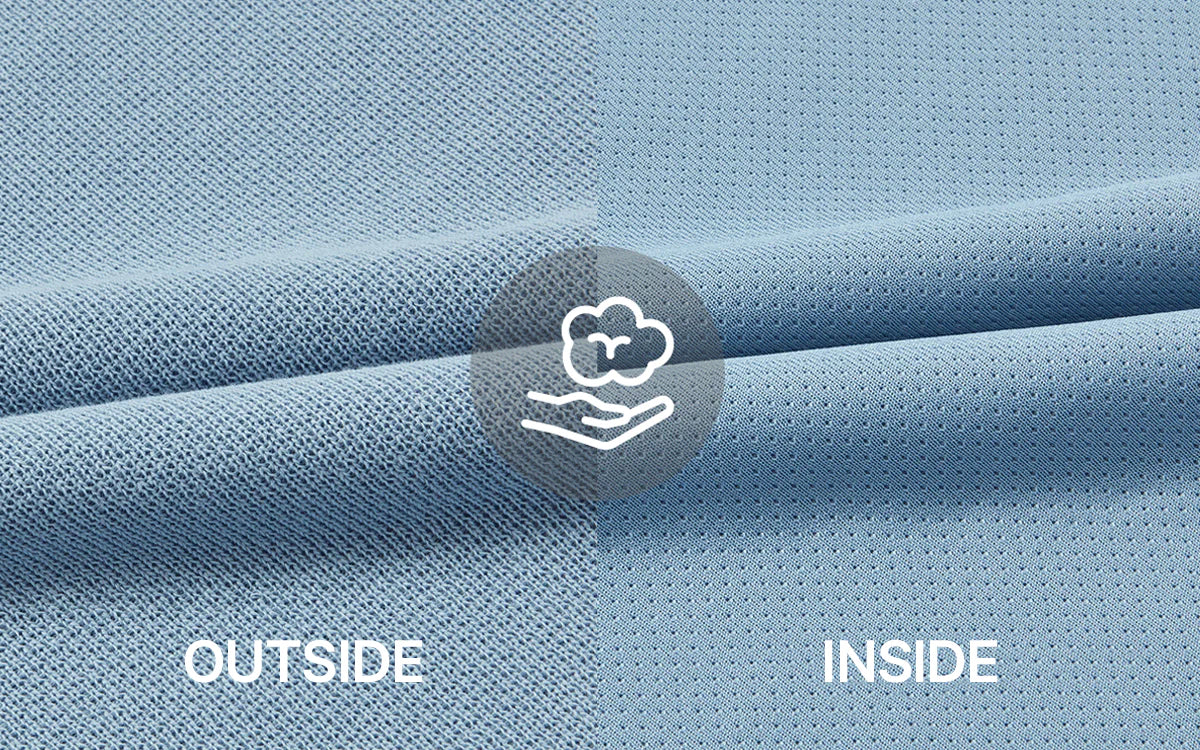 Made with double-sided fabric featuring different textures on the outside and inside, it offers a soft touch against the skin and traps air within its dual structure to maintain warmth and cozy comfort.