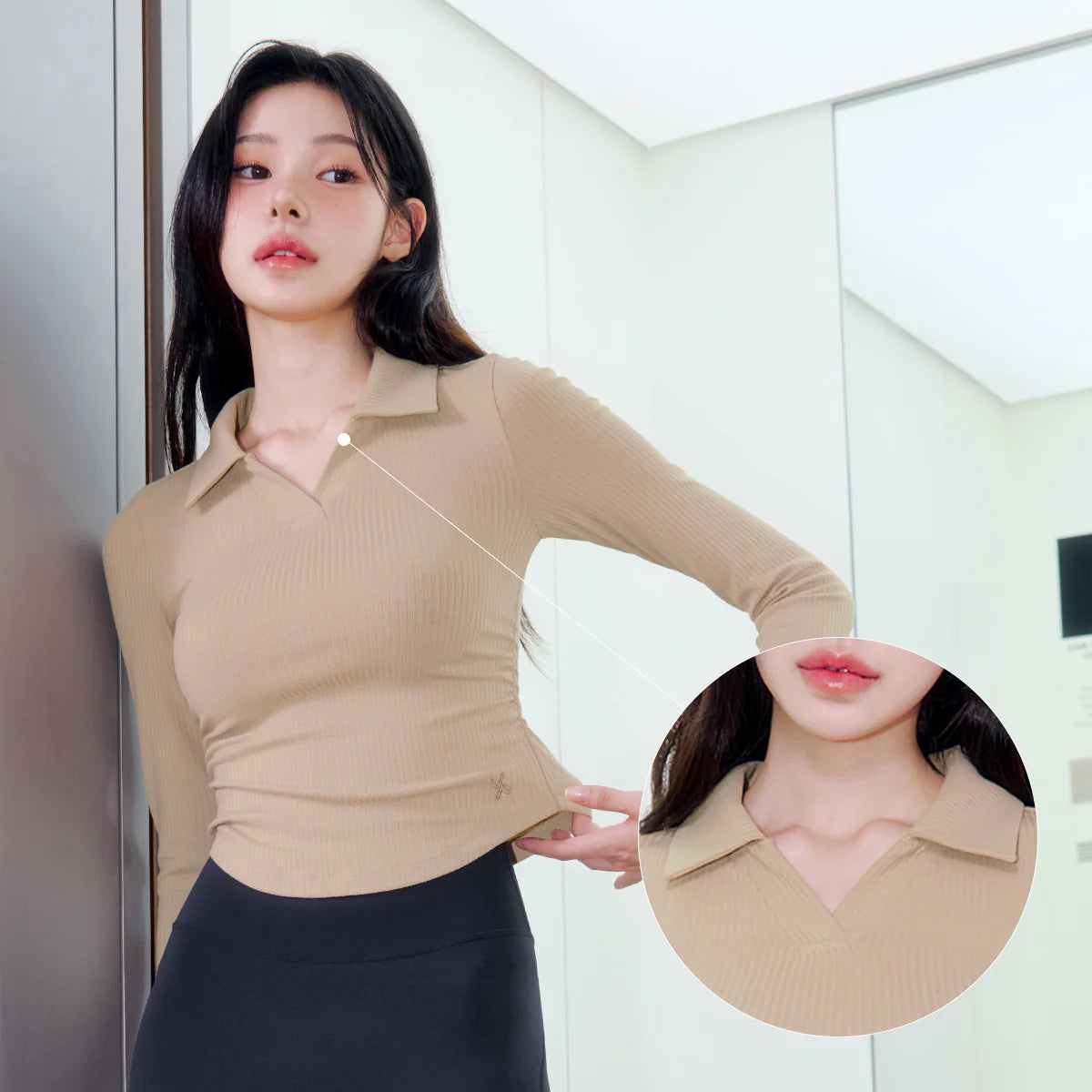 Soft Ribbed Open Collar Long Sleeve