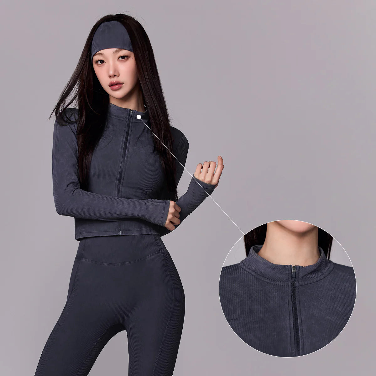 Washing Ribbed Slim Fit Zip-Up Jacket