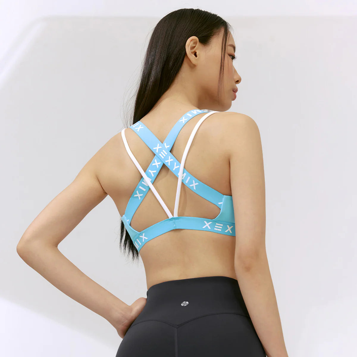 Featuring branded jacquard logo bands on the hem and crisscross shoulder straps, this design not only adds sporty flair but also keeps everything securely in place.