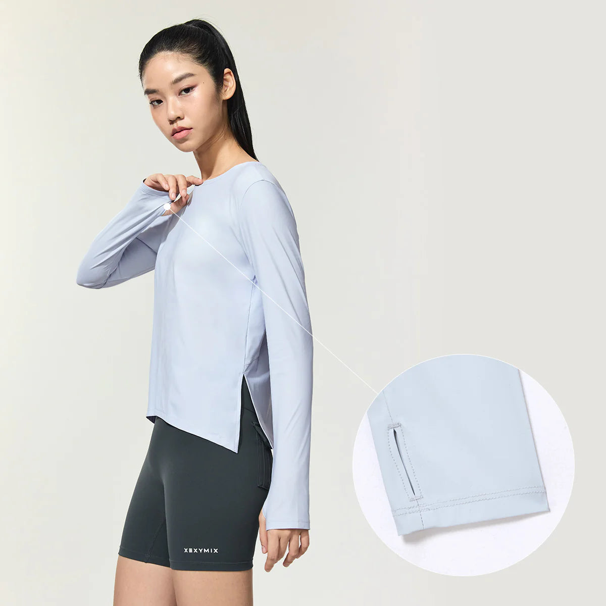 Designed with finger hole details that cover the back of the hands, the sleeves stay securely in place even during movement.