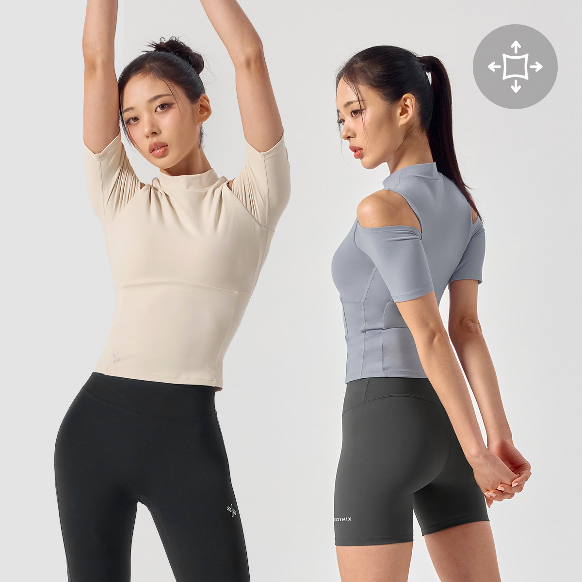 This fabric supports a full range of motion, offering comfortable wear even during active movement.