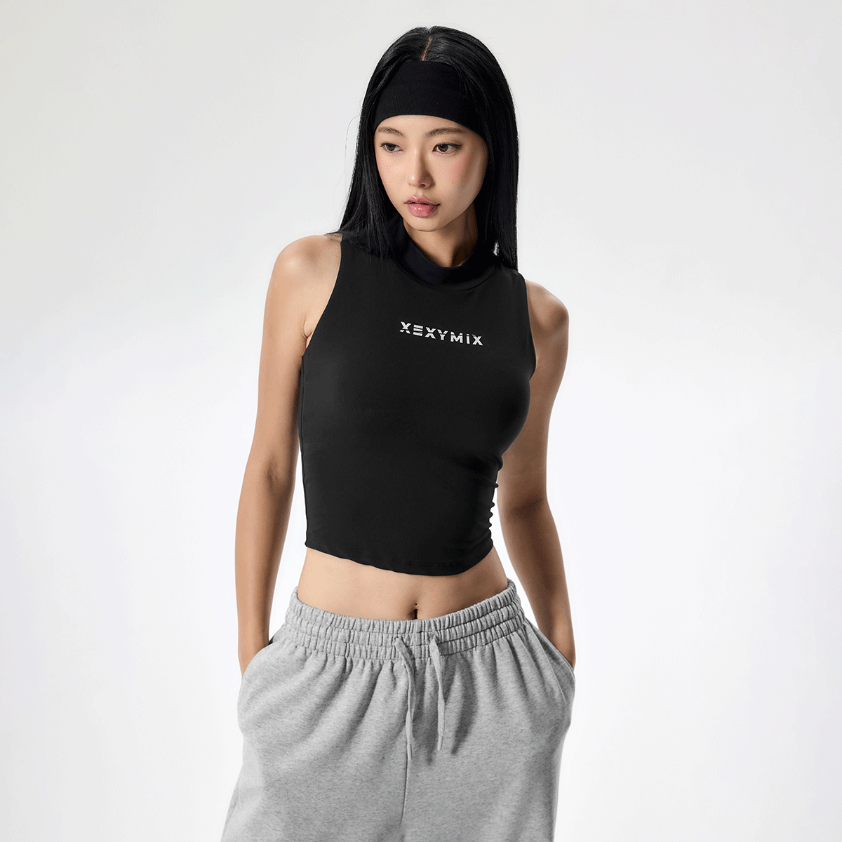 The racerback structure supports a full range of motion while allowing clear visibility of muscle activity during exercise.