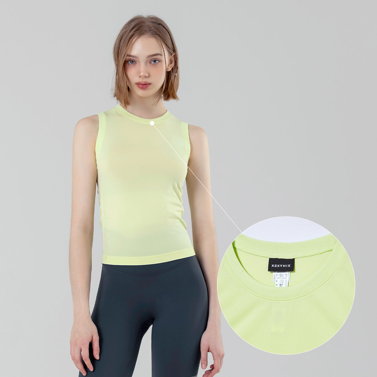 The basic round neckline is finished with a sturdy ribbed trim, offering a comfortable and secure fit without feeling restrictive.