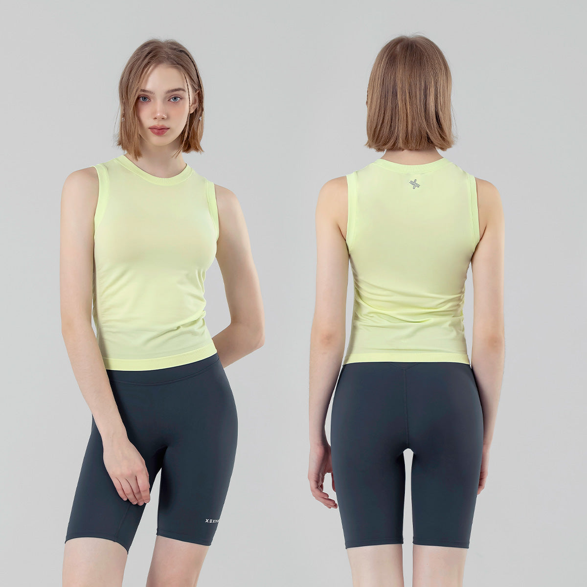 Made with seamless knitting technology and blended with nylon, this lightweight and soft fabric gently adheres to the skin, offering flexible stretch to support a wide range of movements